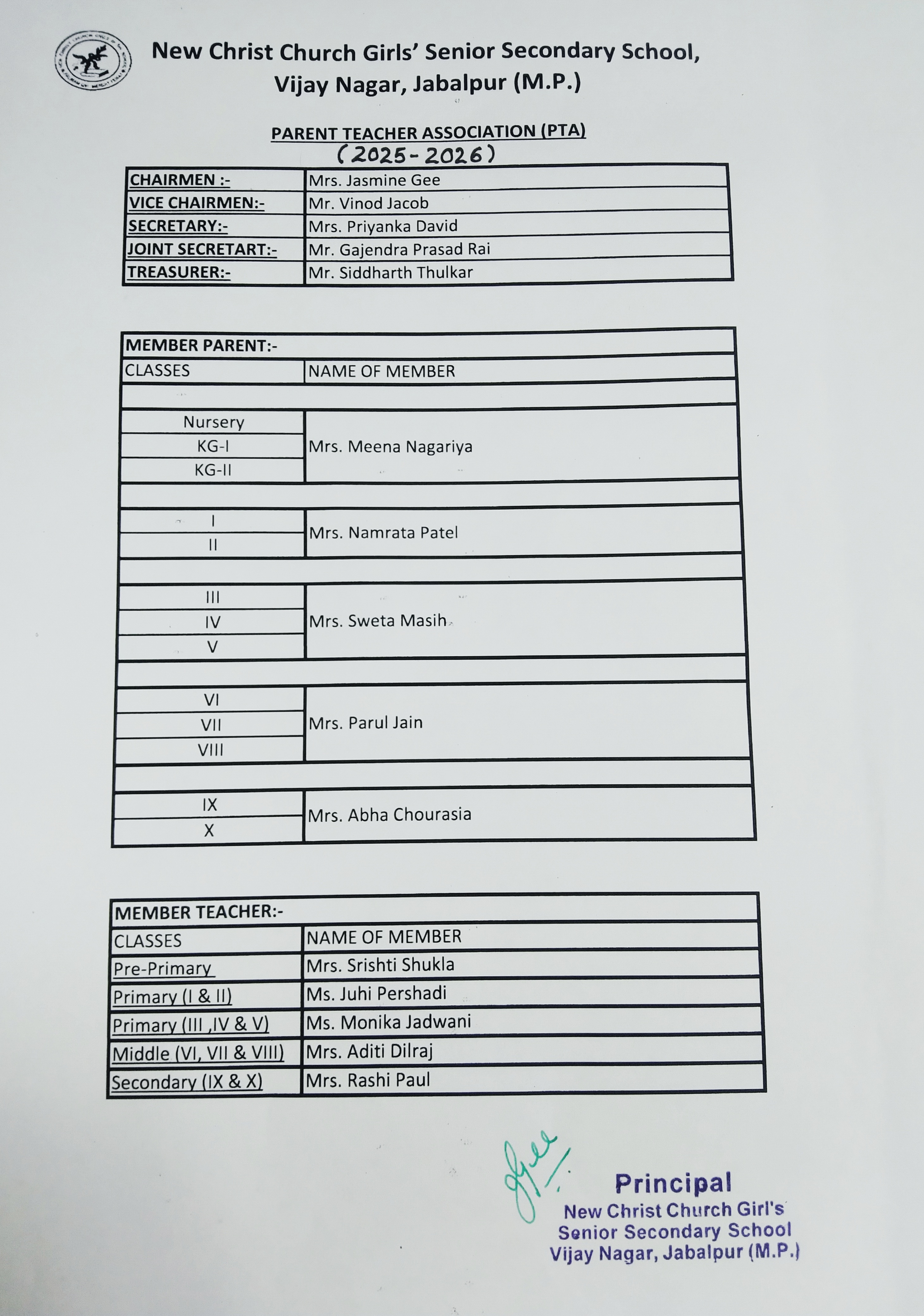 LIST OF PARENTS TEACHERS ASSOCIATION (PTA) MEMBERS |