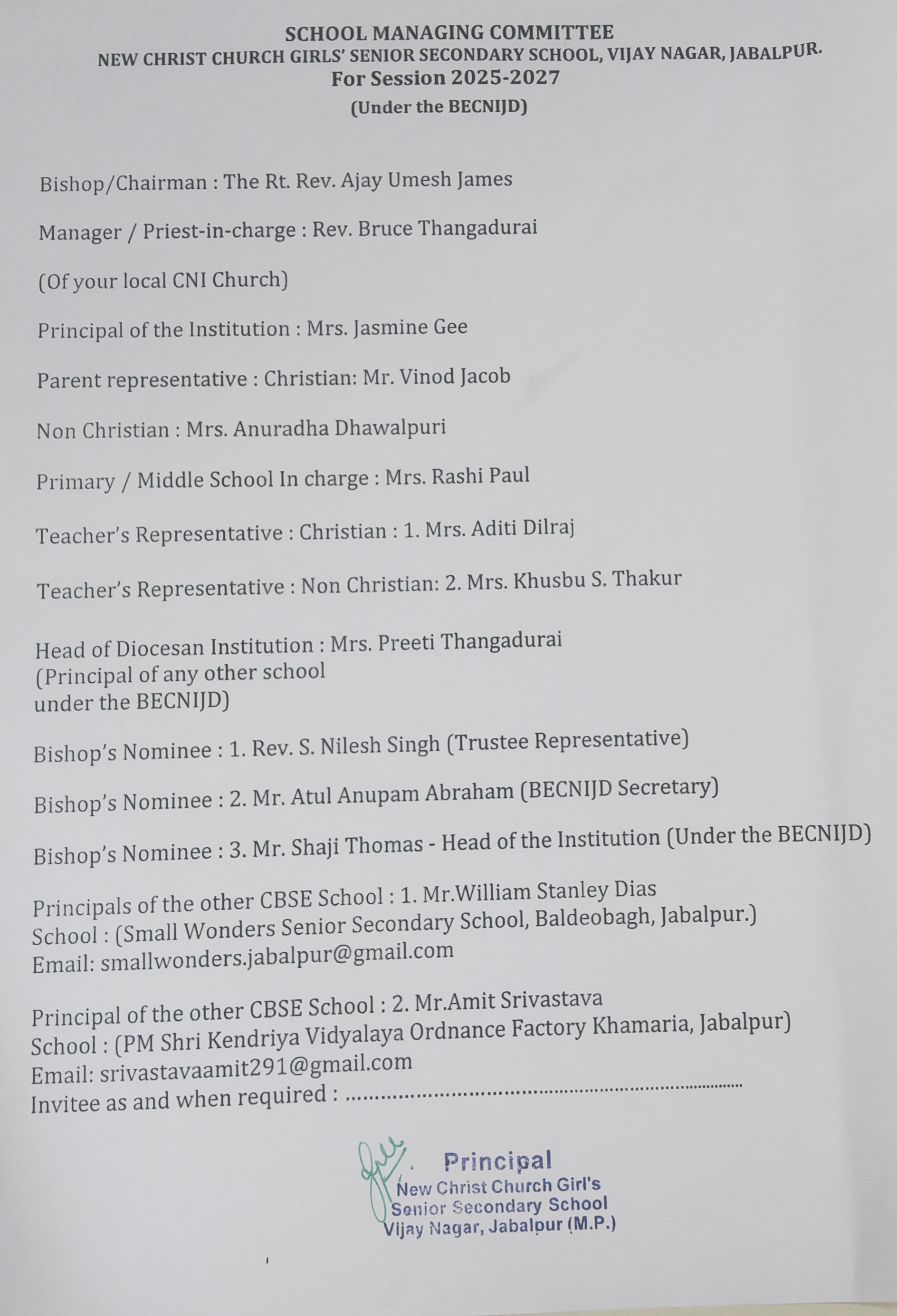 LIST OF SCHOOL MANAGEMENT COMMITEE (SMC) |