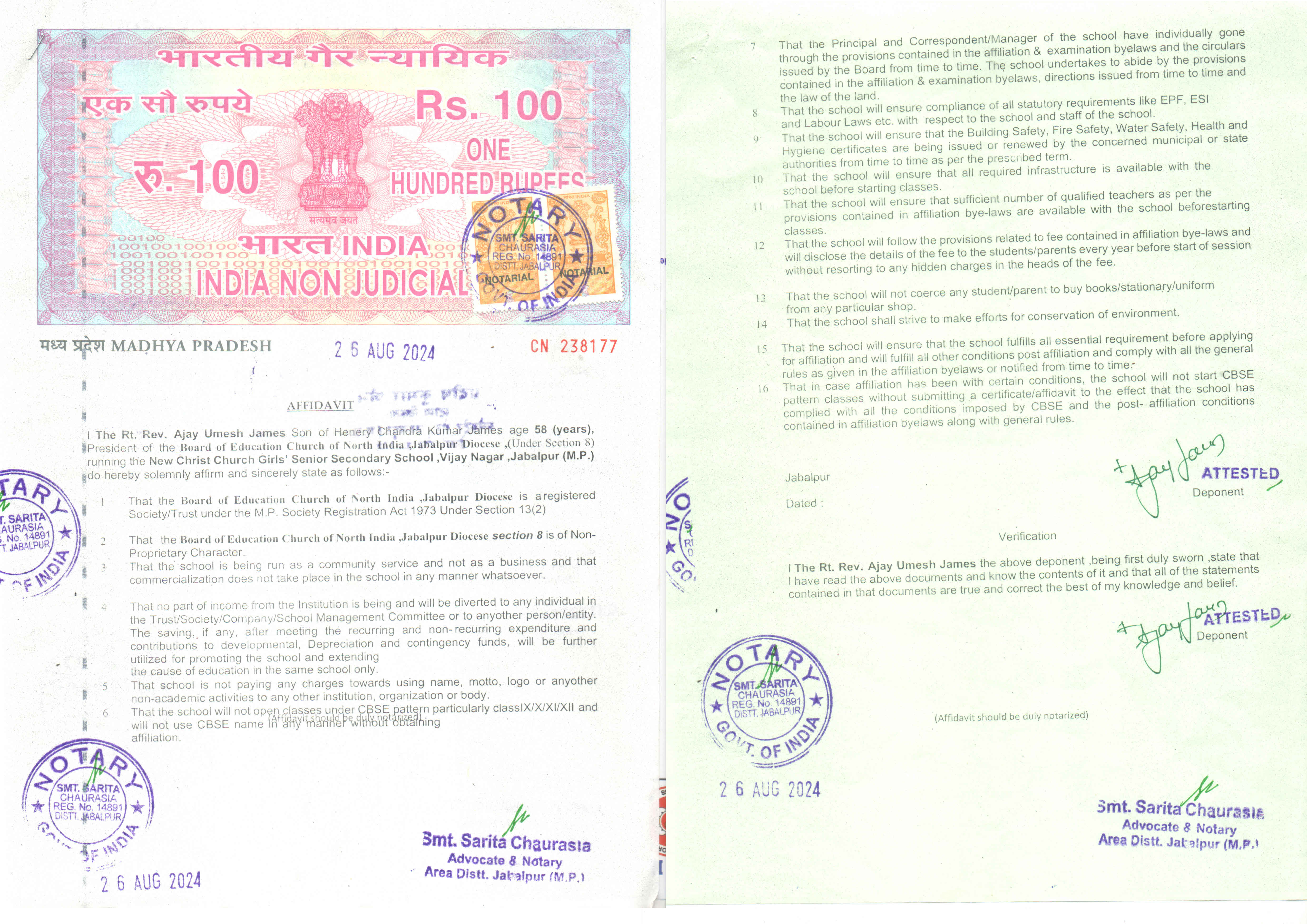 COPY OF THE DEO CERTIFICATE SUBMITTED BY THE SCHOOL FOR AFFILIATION/UPGRADATION/EXTENSION OF AFFILIATION OR SELF CERTIFICATION BY SCHOOL |